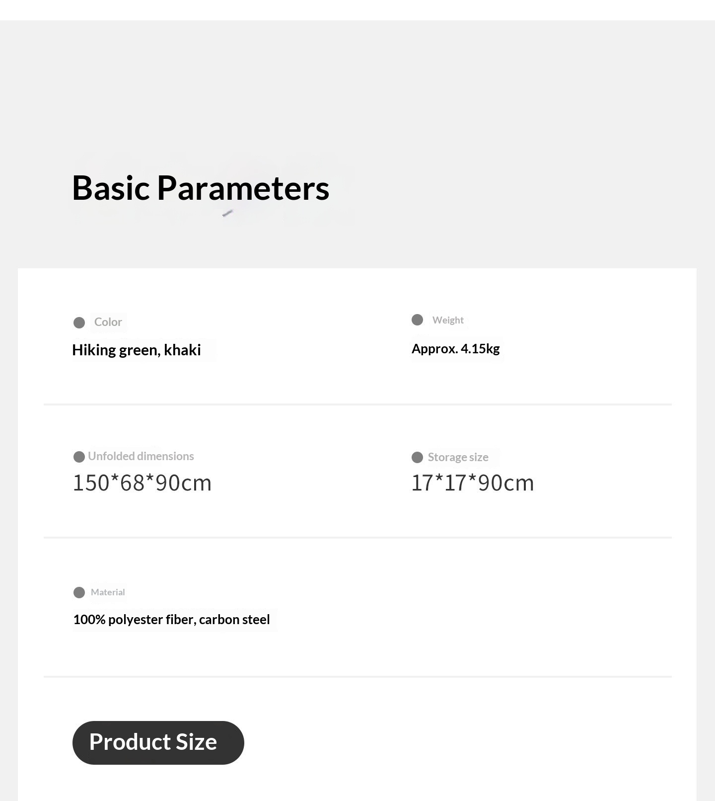 Size: 150x68x90 cm EzCamp