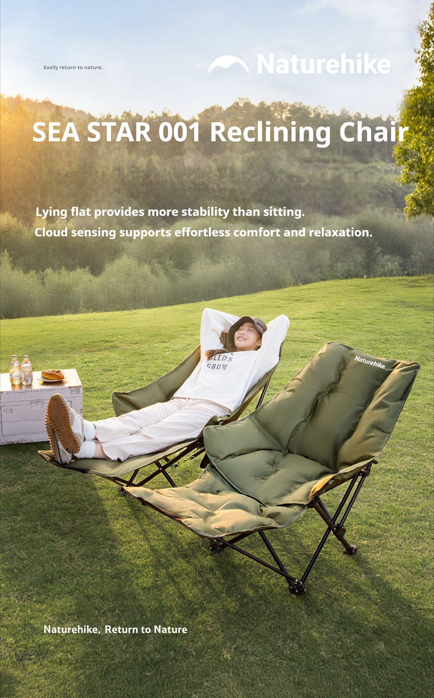 Naturehike SEA STAR 001 Reclining Chair High Back Moon Chair 3 Adjustable Level Cotton Filled Foam Padded Relax 150kg Max Load Outdoor Camping