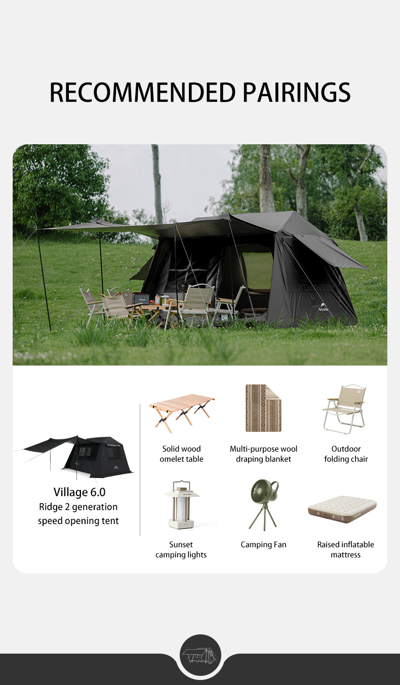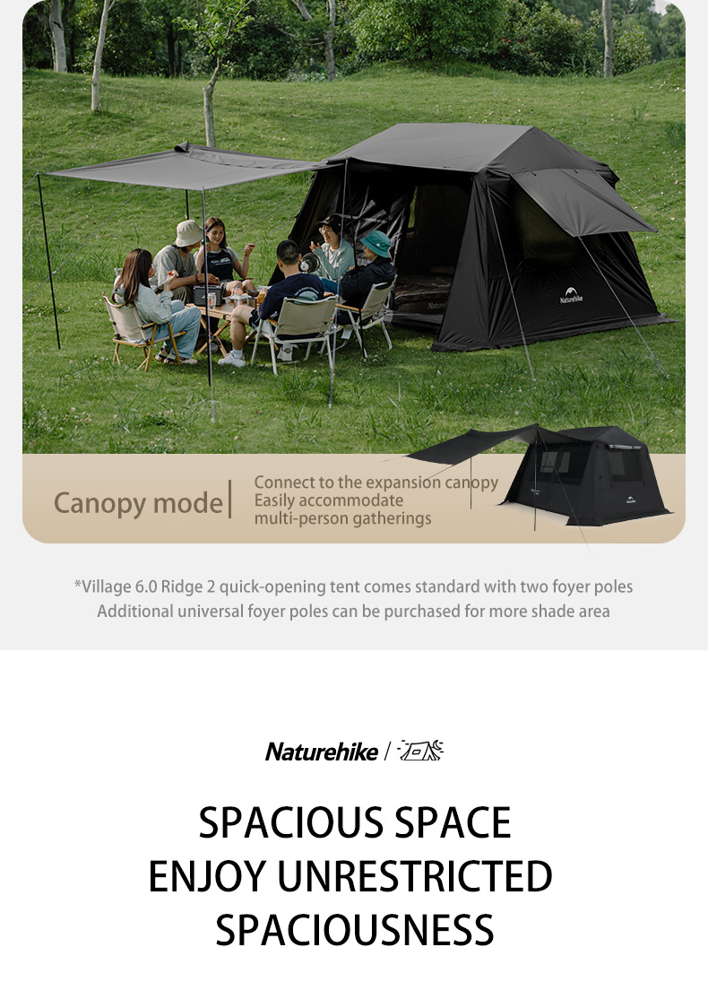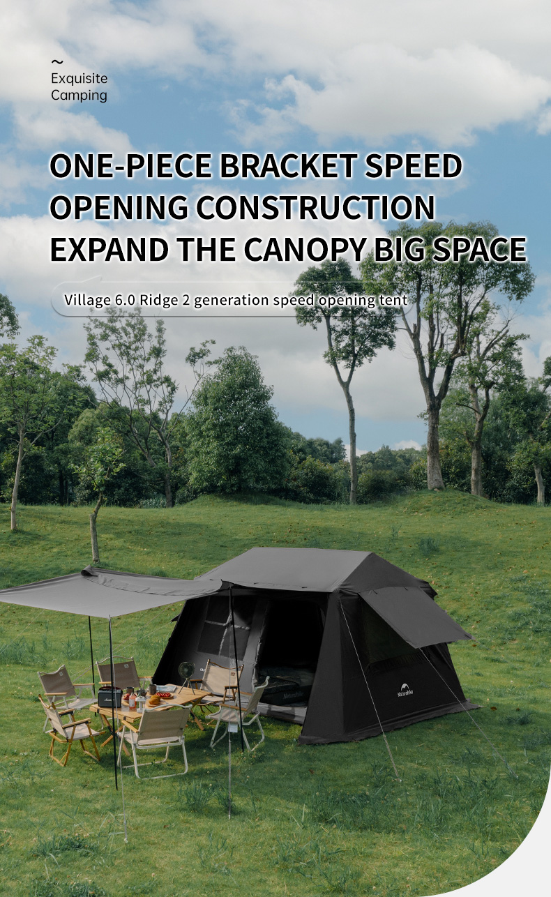 Naturehike VILLAGE 6.0 Black Edition Ridge Tent 2-4 Person Cabin Style Automatic Tent 2026 Gen 2 Spacious Space 210D Oxford Cloth Outdoor Camping