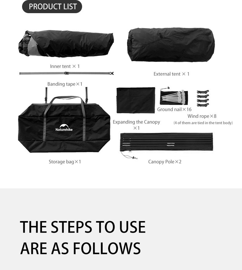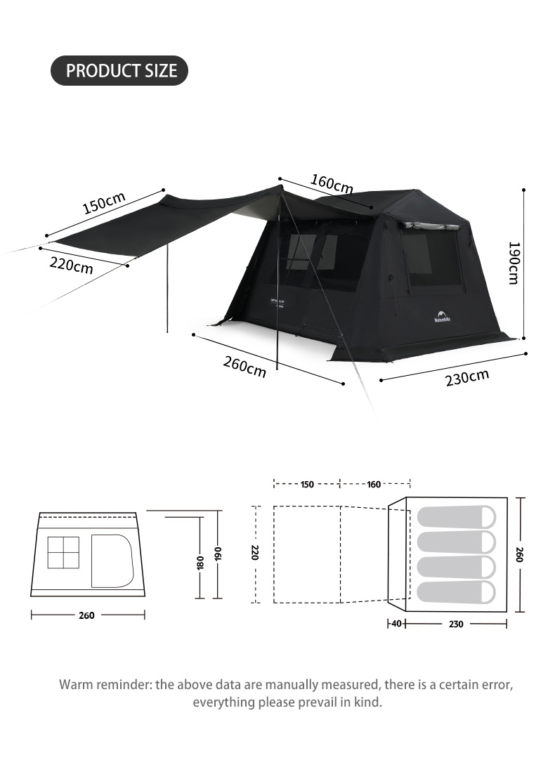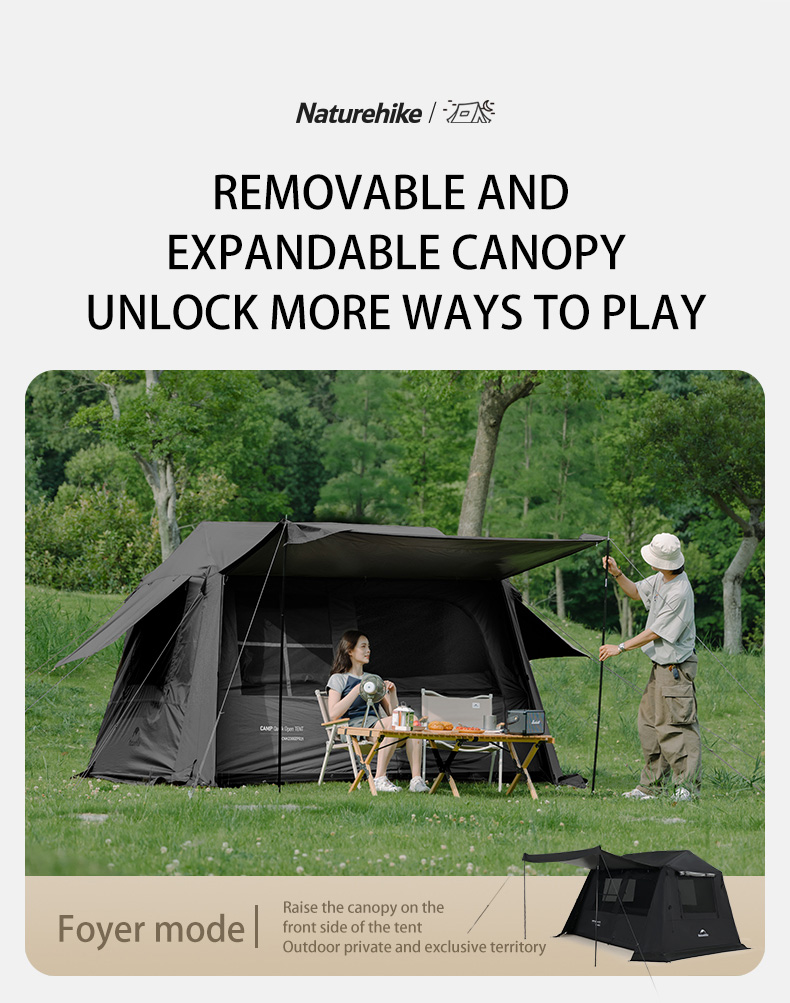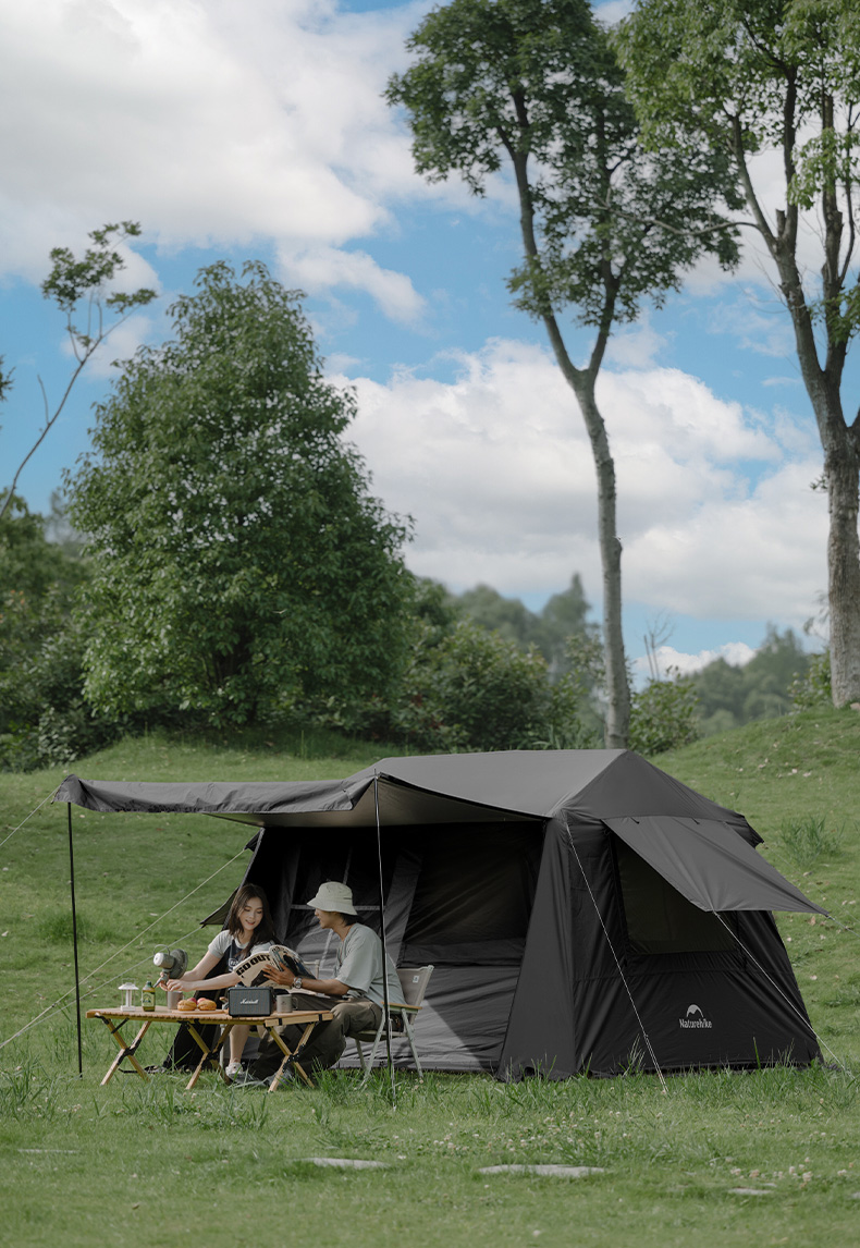 Naturehike VILLAGE 6.0 Black Edition Ridge Tent 2-4 Person Cabin Style Automatic Tent 2026 Gen 2 Spacious Space 210D Oxford Cloth Outdoor Camping