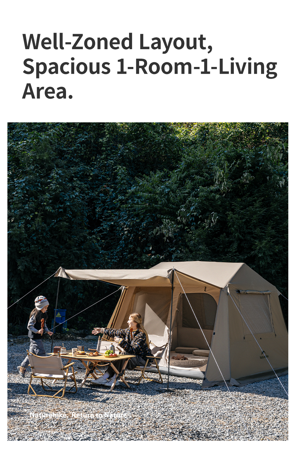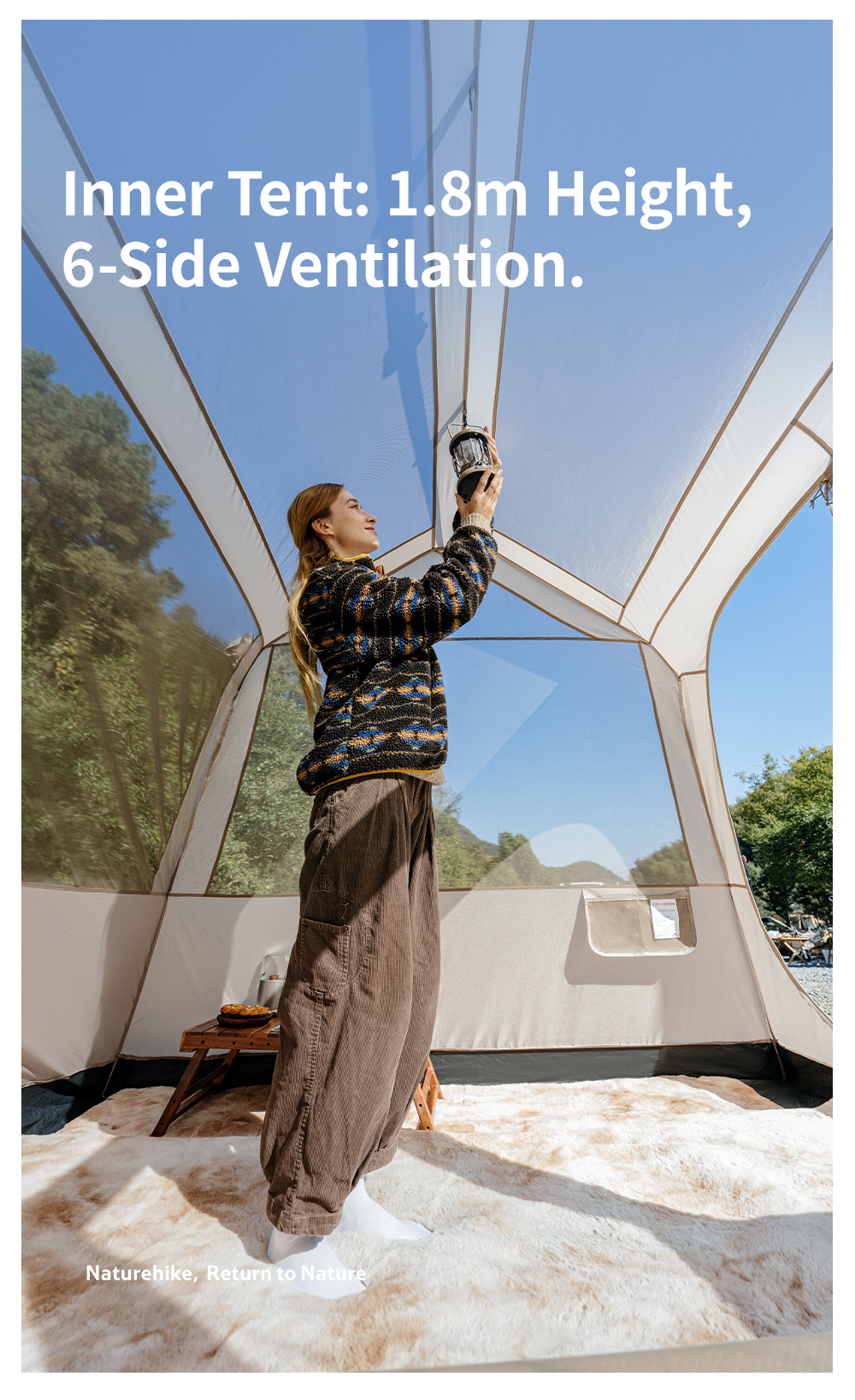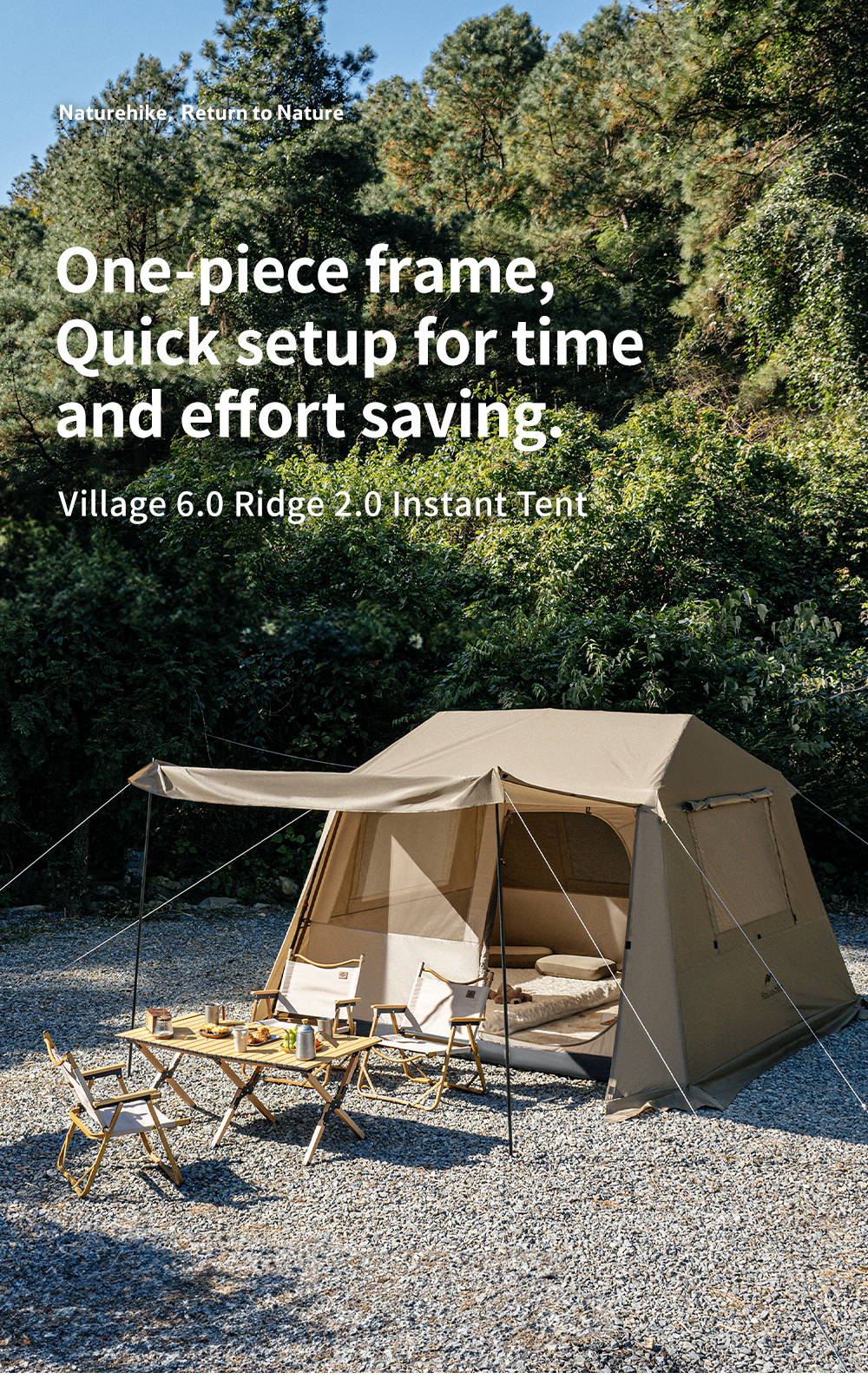Naturehike VILLAGE 6 LITE Automatic Tent Fast Cabin Style Tent 4 Person One-Piece Setup Ridge 2.0 9m² Total Use Space 360° Ventilation Outdoor