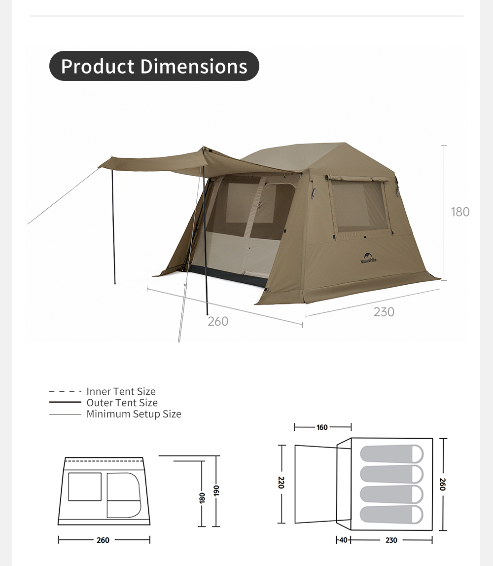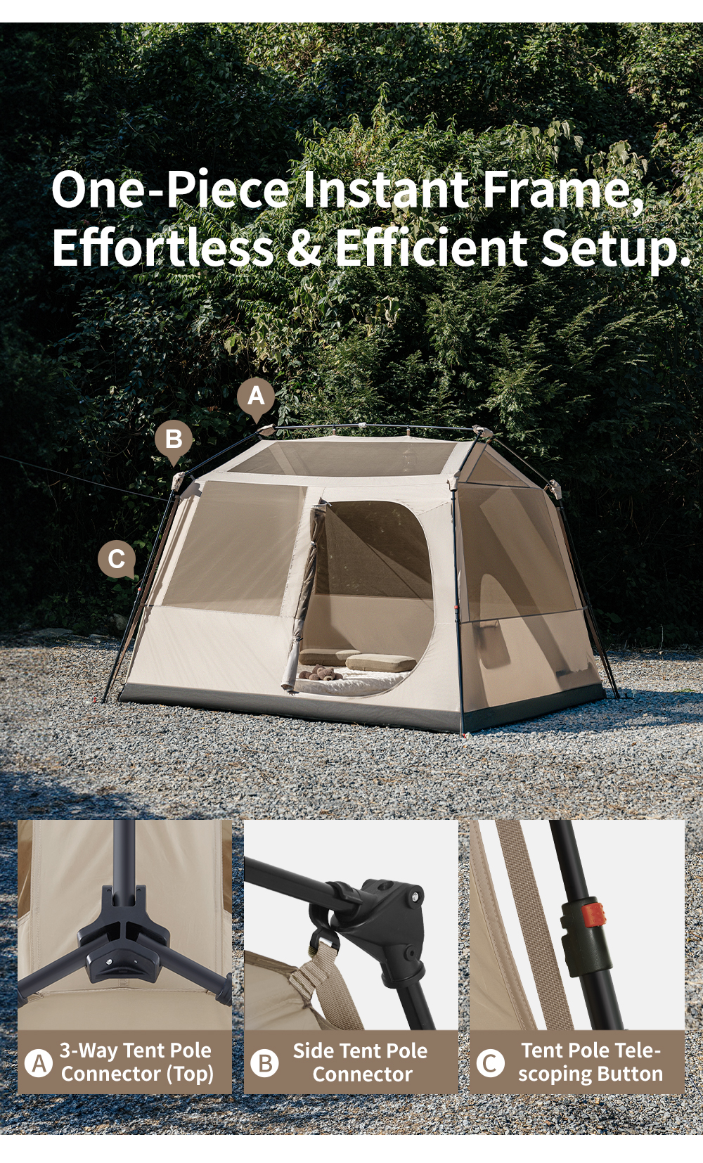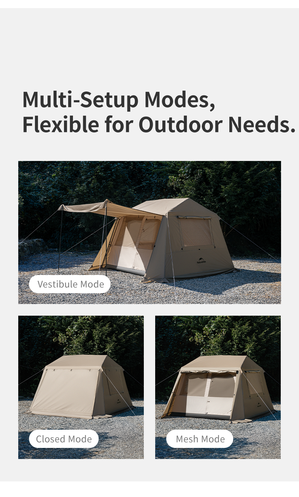 Naturehike VILLAGE 6 LITE Automatic Tent Fast Cabin Style Tent 4 Person One-Piece Setup Ridge 2.0 9m² Total Use Space 360° Ventilation Outdoor