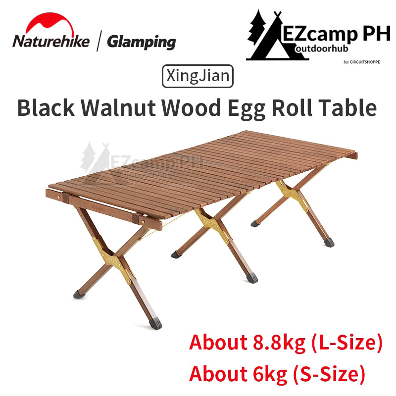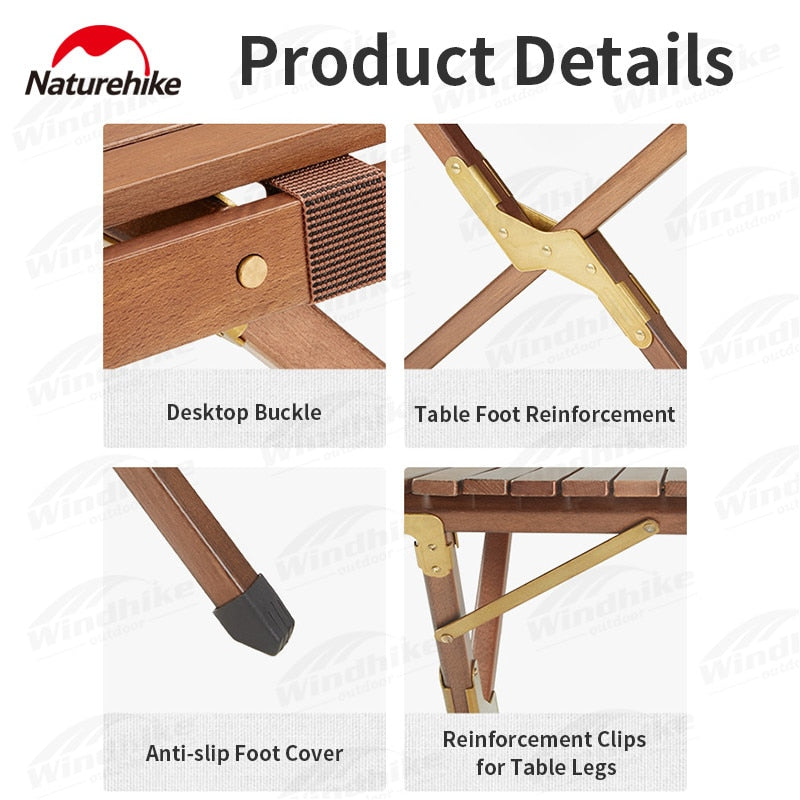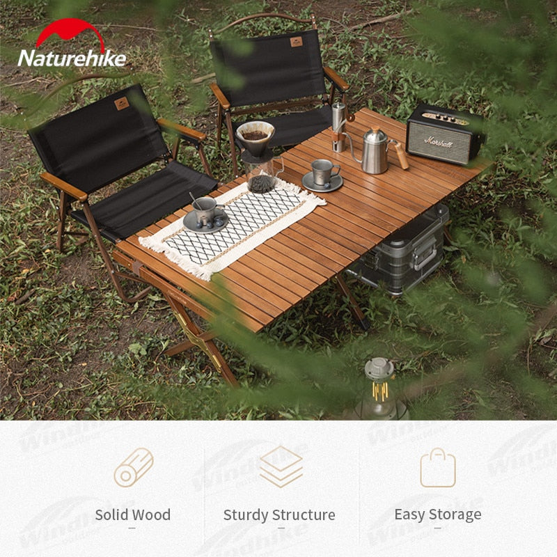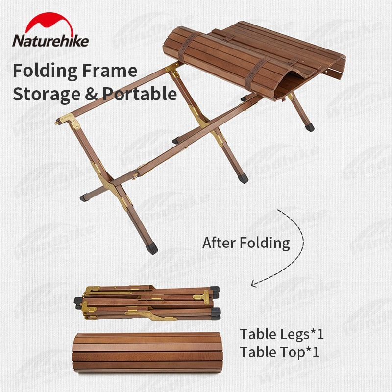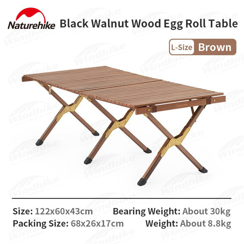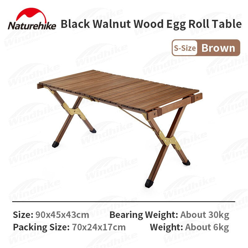 Naturehike Walnut Wood Egg Roll Folding Portable Camping Outdoor Table Small Large Size Solid Wooden Foldable Copper Plated Heavy Duty Support