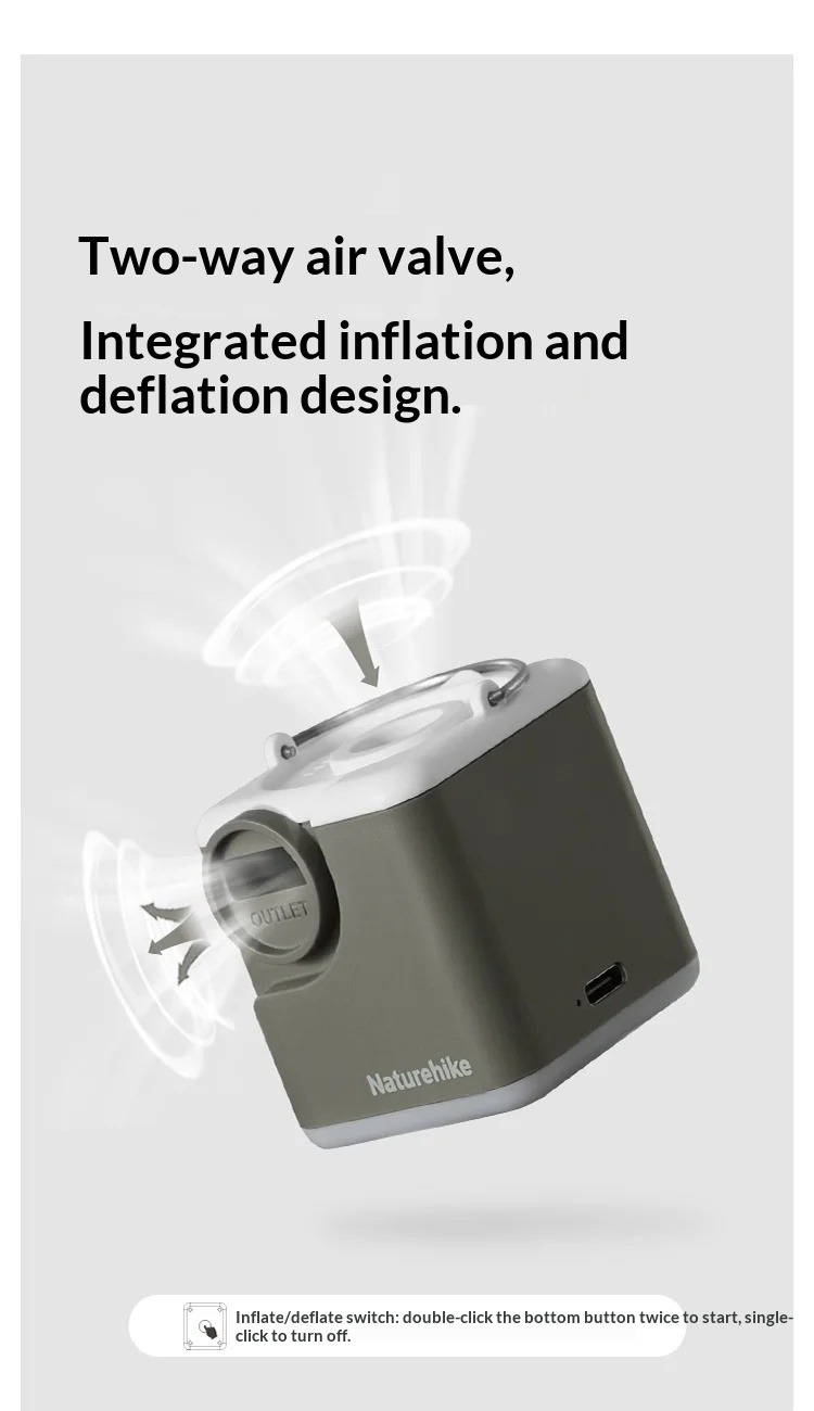 Naturehike WIND AIR Outdoor Inflator Multi-Functional Mini Air Pump 4.5KPA LED Lighting Lamp Lantern For Inflatable Camping Equipment & Accessories