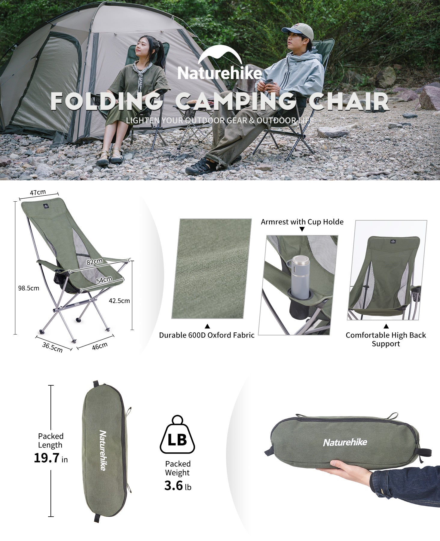 Naturehike YL06 Plus Folding Chair Ultralight Portable Leisure High Back Armchair Durable Comfort Camping Travel Aluminum Chairs 600D Oxford Cloth