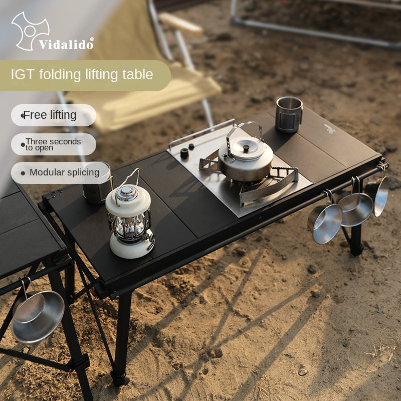 Vidalido IGT Modular Folding Table Portable Lightweight Foldable Tactical Integrated Grill Split Splicing Table Height Adjustable Max Load Up To 60kg 2.5 Units