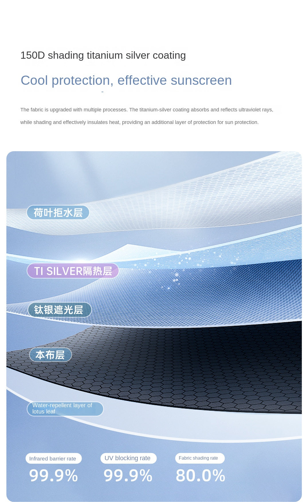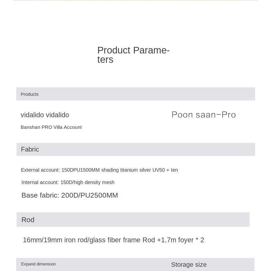 Material: 150D Titanium Silver Coated, 150D High Density Mesh, Iron, Glass Fiber