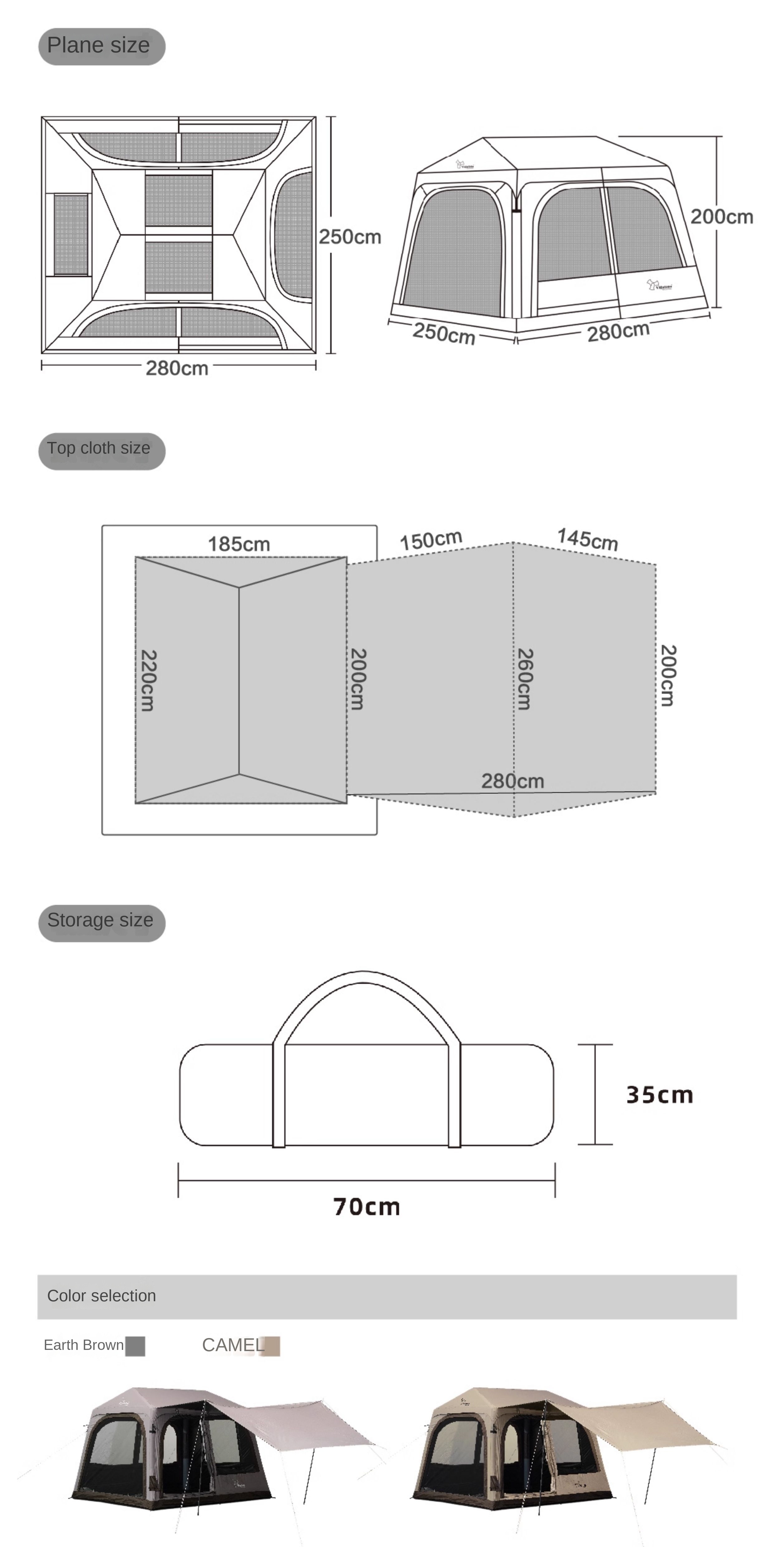 Size: 280x250x200 cm EzCamp