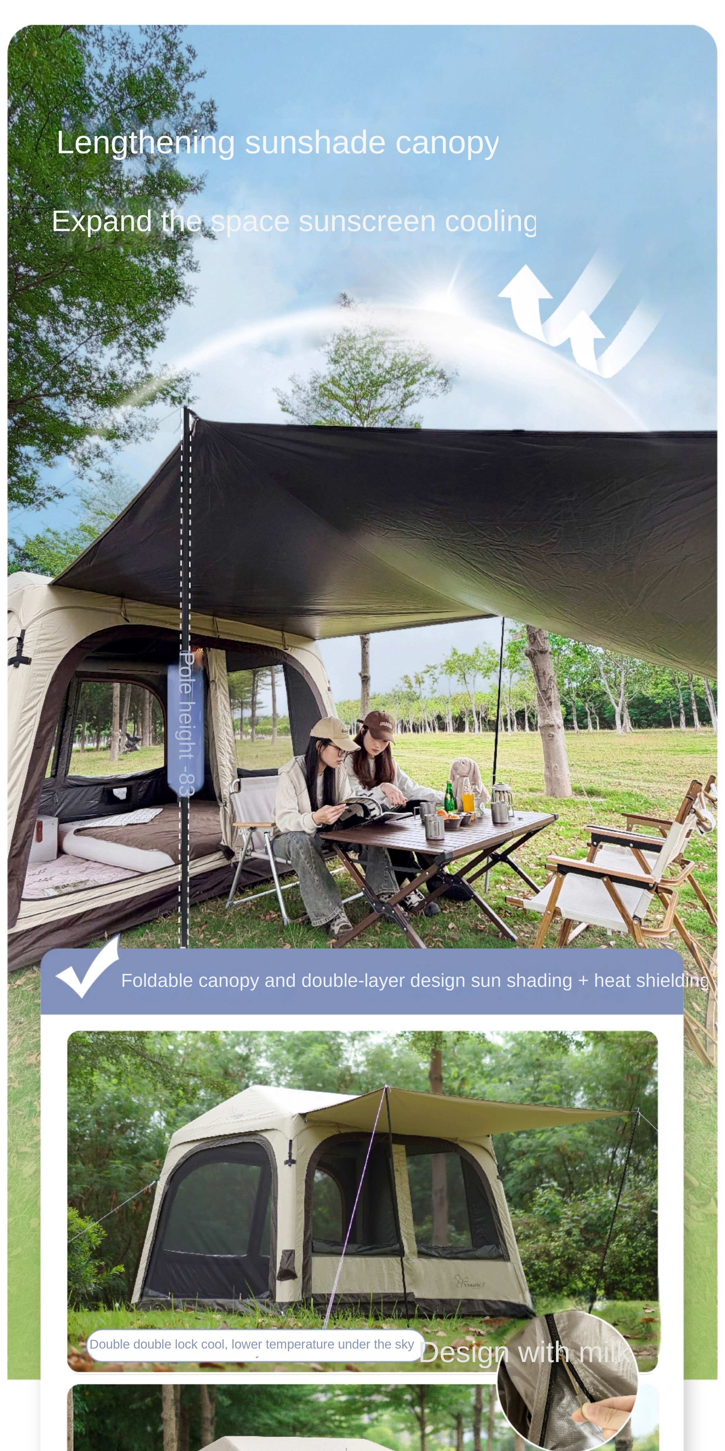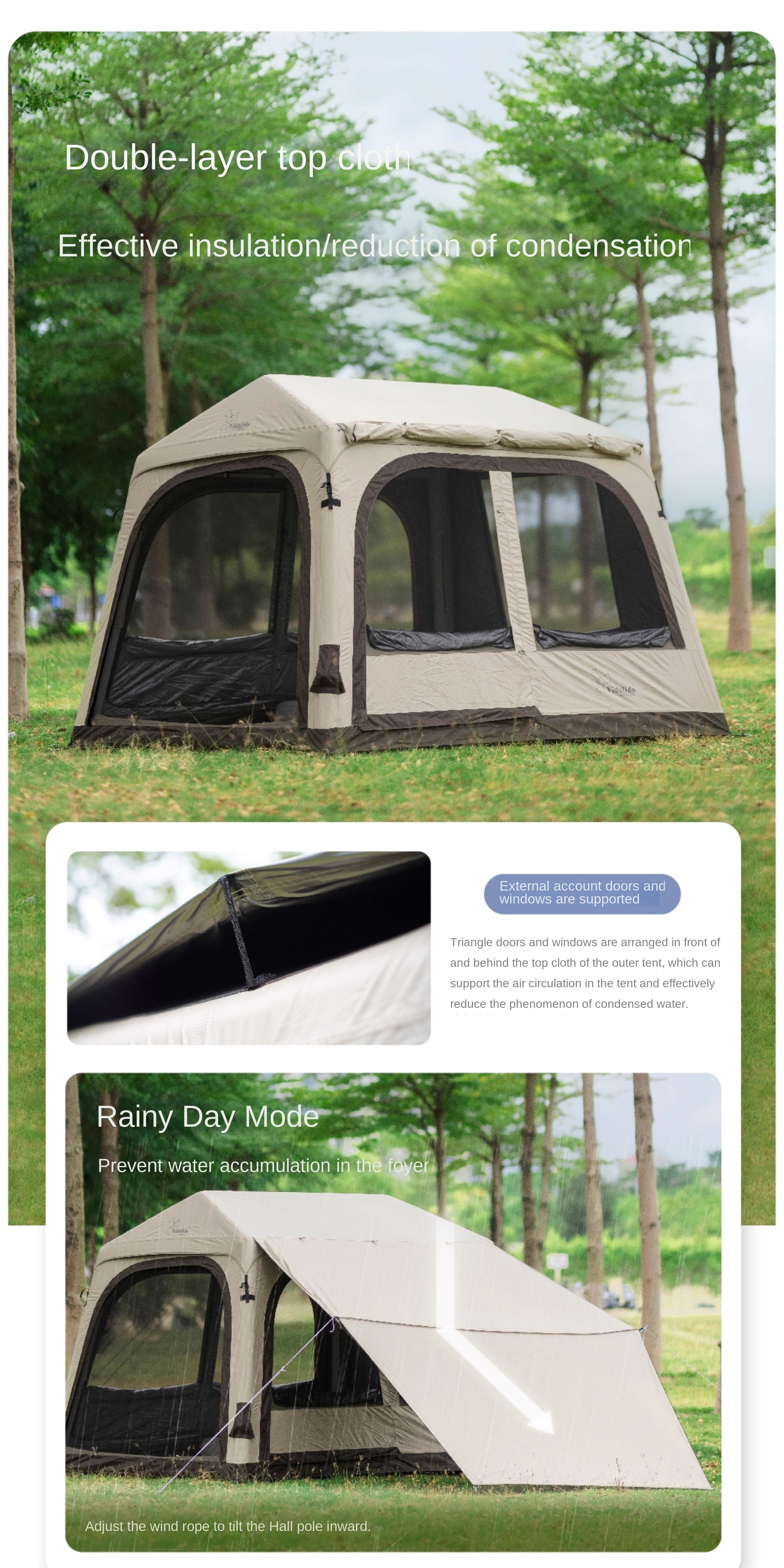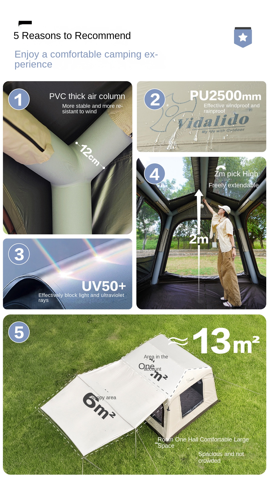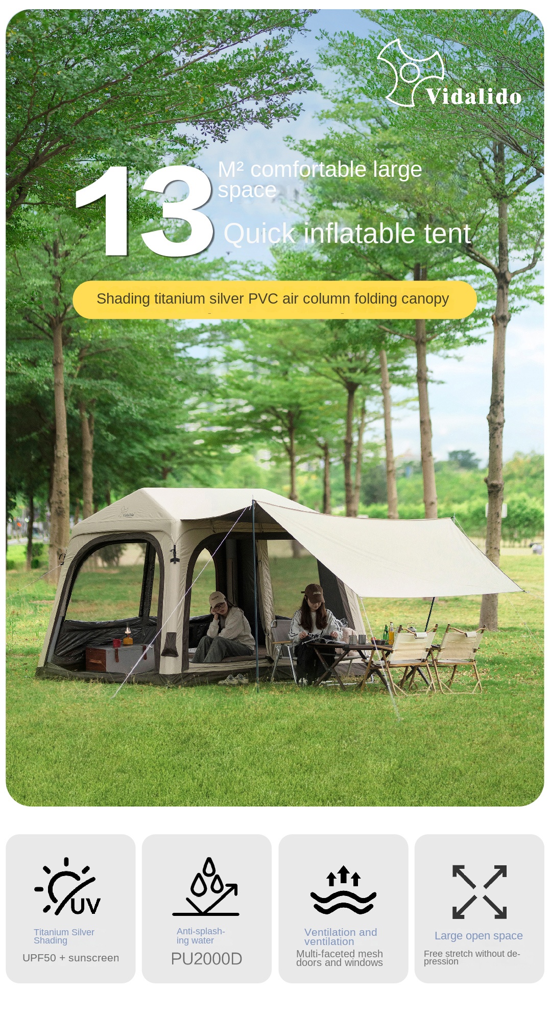 Vidalido WISH HOUSE 7.0 Air Inflatable Tent Fast Build 3-4 Person Ti Silver Coated Sunscreen PVC Air Poles Full View Mesh Waterproof 13m² Usable Space