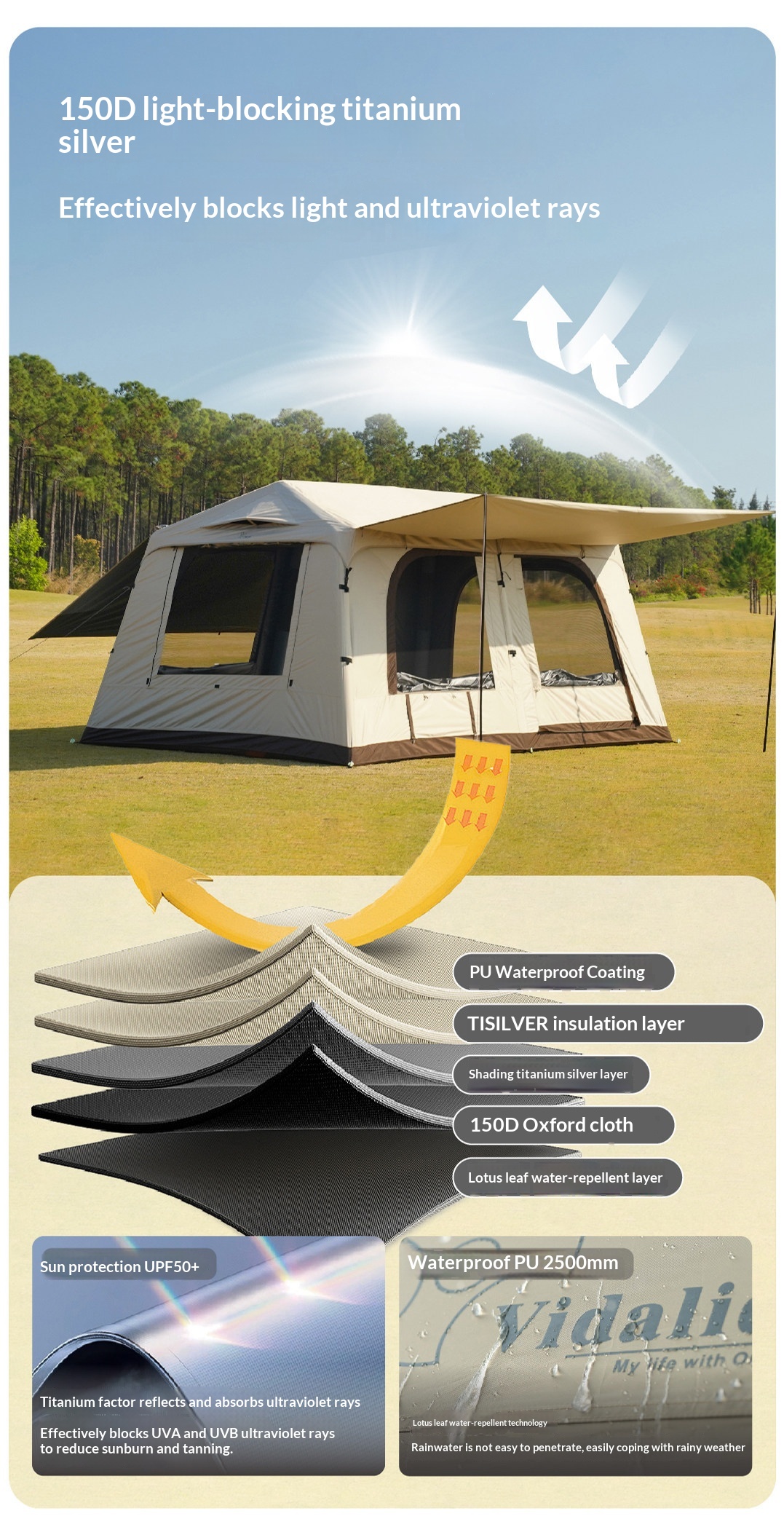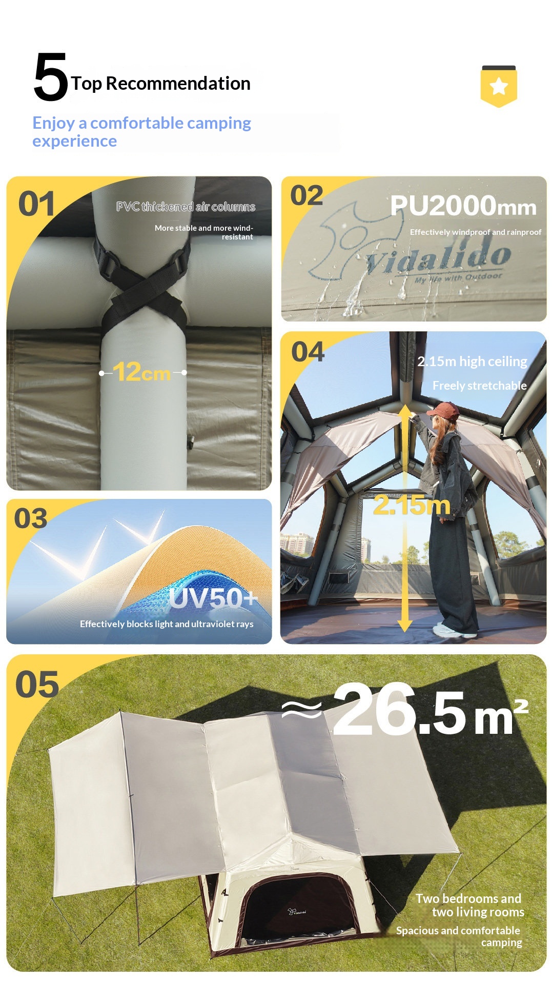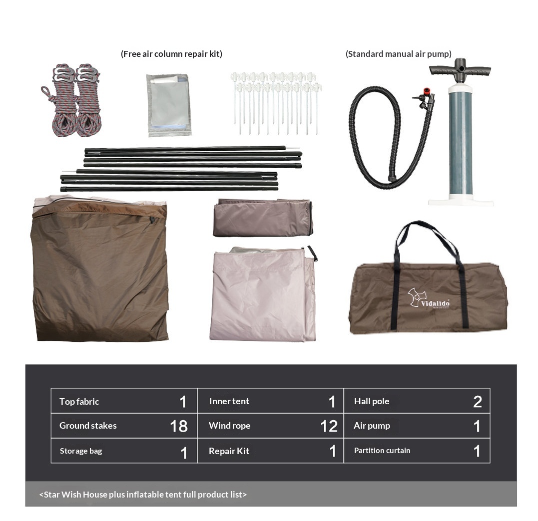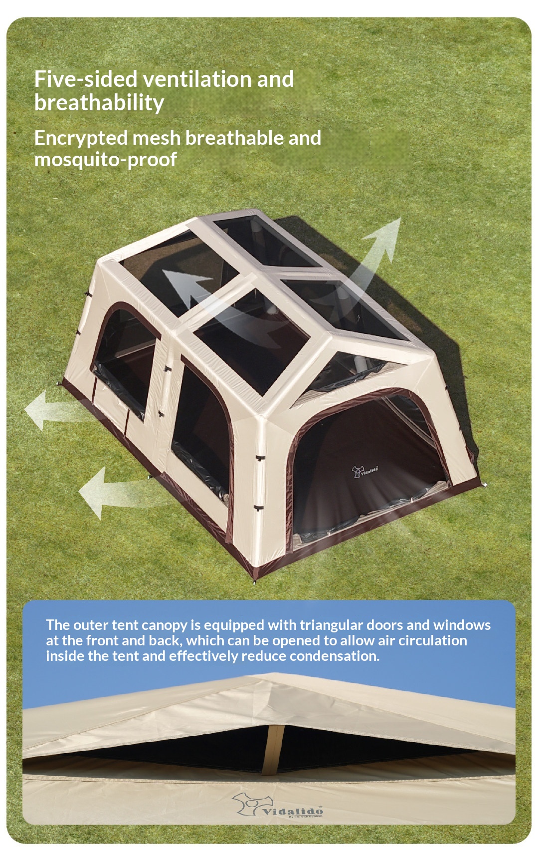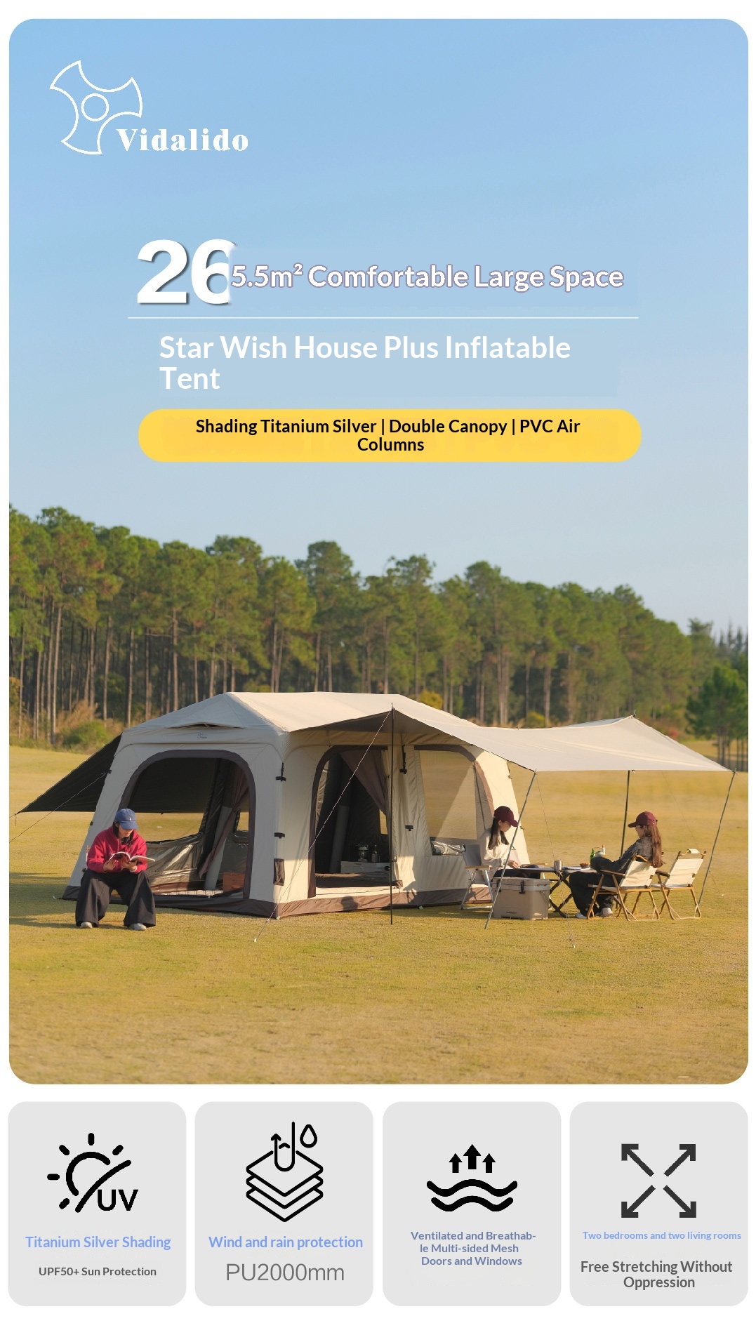 Vidalido WISH HOUSE PLUS 12 Air Inflatable Tent Fast Build 4-6 Persons Ti Silver Coated Sunscreen PVC Air Poles Full View Mesh 26m² Large Usable Space