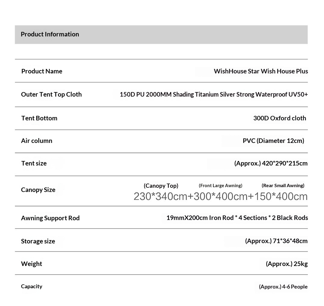 Product Name: WISH HOUSE PLUS 12 Air Inflatable Tent
